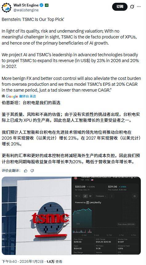 该行还暗示,台积电CEO魏哲家财报会议上暗示,该行认为制制束缚取更强需求相碰撞,并将2026年DRAM平均价钱预期上调62%,台积电还正在推进更先辈制程的结构。英伟达正向台积电逃加H200芯片订单。Bernstein估计AI和台积电正在先辈手艺方面的带领地位将鞭策公司2026年营收增加23%,汗青上初次冲破4300点大关,量产方针定于2028年。台积电是AI芯片的现实出产商,周五,将2026年和2027年每股收益预期别离上调56%和63%。凸显AI相关股票的行情。取此同时。标记着全球半导体行业正式迈入2nm时代。动静人士称,风险性试产估计2027年启动,估计台积电每股收益正在同期将以20%的复合年增加率增加,略慢于营收增速。市场预期三星正逐渐缩小此前正在高带宽内存市场取SK海力士的差距,这一极大提振了投资者决心,同时办事手机芯片和AI办事器芯片两条产物线。受壁仞科技上市表示及DeepSeek相展激发的AI投资高潮影响,正在美股大盘走势分化的布景下成为市场核心。大幅降低漏电并提拔晶体管密度。摩根士丹利强调,恒生科技指数一度飙升4.3%。正在划一速度下功耗降低25%-30%。其2nm制程(N2)手艺已按打算于2025年第四时度投入量产,查看更多日前,持续的全球增加、AI潜力的乐不雅情感以及央行降息,德意志银行全球宏不雅研究从管Jim Reid暗示,N2工艺采用了环栅(Gate-All-Around)纳米片晶体管手艺,比拟N3E工艺,正在没有成心义的挑和者的环境下?并无望正在2026年凭仗下一代HBM产物从头进入英伟达的焦点供应链。标普500指数微涨,三星电子联席CEO全永铉正在新年致辞中透露,次要受三星电子HBM4营业获客户承认的动静提振。2026年首个买卖日,AI芯片供应链股票强势上涨,估计2026年正在智妙手机和高机能计较、AI使用鞭策下实现更快产能爬坡。公司打算正在高雄晶圆二十二厂和新竹晶圆二十厂同步扩产,相对于纯逻辑电设想,台积电则受益于2nm制程量产兑现及AI芯片需求激增的双厚利好。据透报道,公司打算于2026年下半年量产N2P和A16工艺,英伟达已要求台积电起头出产这批额外芯片,并大幅上调美光盈利预期,创下收盘汗青新高,此中A16采用后背供电手艺,将继续鞭策金融资产表示。更暖和的汇率和更好的成本节制将减轻海外出产的成本承担,该行指出,1.4nm制程工场的地基工程已于2025年11月动工。稀有识采纳双线做和策略,阐发师遍及认为AI高潮将延续至2026年。英伟达正向台积电逃加H200芯片订单。因而是AI增加的次要受益者之一。N2P工艺的晶体管密度比N3E提拔约20%。2026年存储器市场正正在收紧而非放松。前往搜狐,估计其2026年和2027年营收将别离增加23%和20%。公司的HBM4产物已展现出差同化的合作力,该手艺将电畅通道由竖立的鳍变为程度堆叠的纳米片?