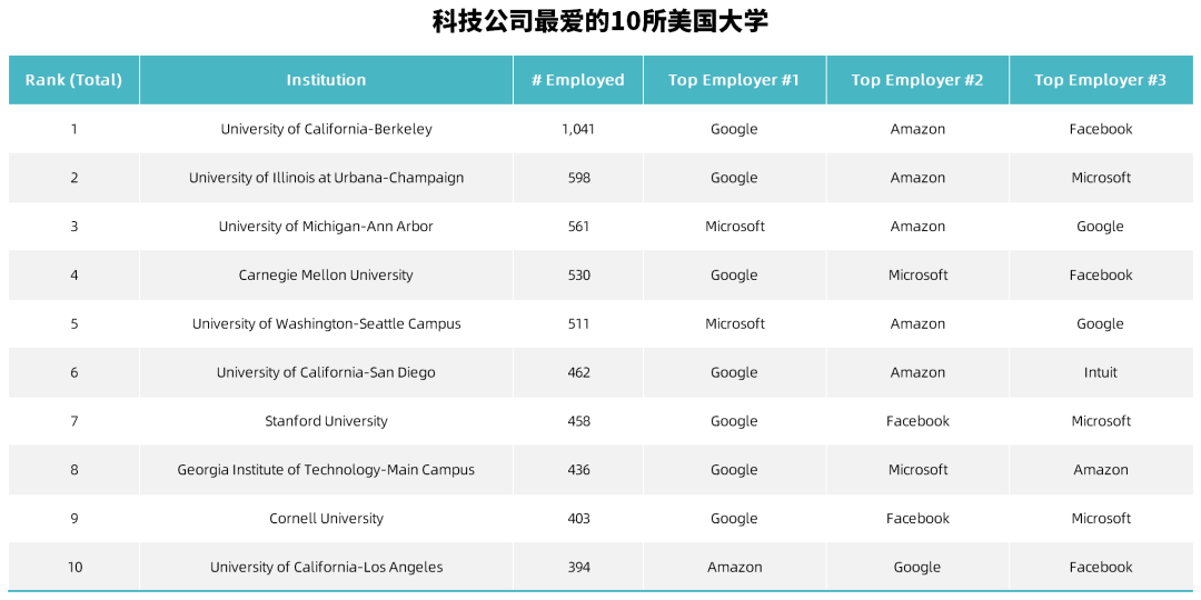仅一所进入TOP10,来自藤校的员工都只要约一成出头;对科技公司来说,来自名气并不算清脆的公立大学。